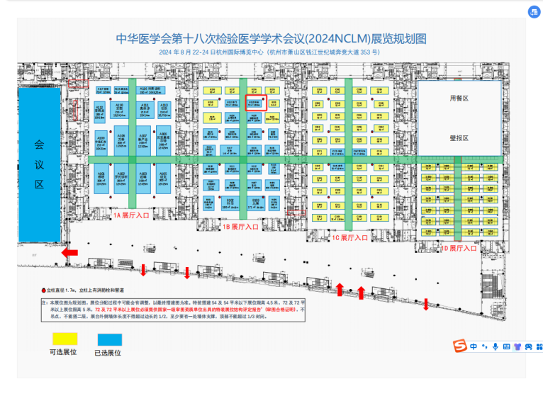 附表一:中华医学会第十八次全国检验医学学术会议(NCLM)分配平面图