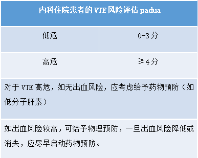 Padua风险评估模型根据患者临床症状、病史对其进行量化评分并评估其VTE风险,可以有效的筛选出内科住院患者VTE的高危人群。但有国内研究显示其特异度较低,多项危险因素在VTE与非VTE患者间并无显著差异,对内科住院患者VTE风险分层的价值有限。