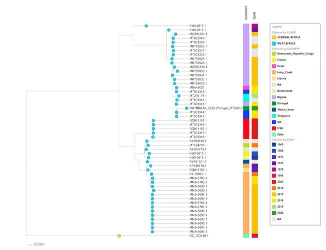 根据上面基因进化树分析显示,分离出来的病毒与2018年和2019年从尼日利亚传播到英国、以色列和新加坡的病毒有密切关系。